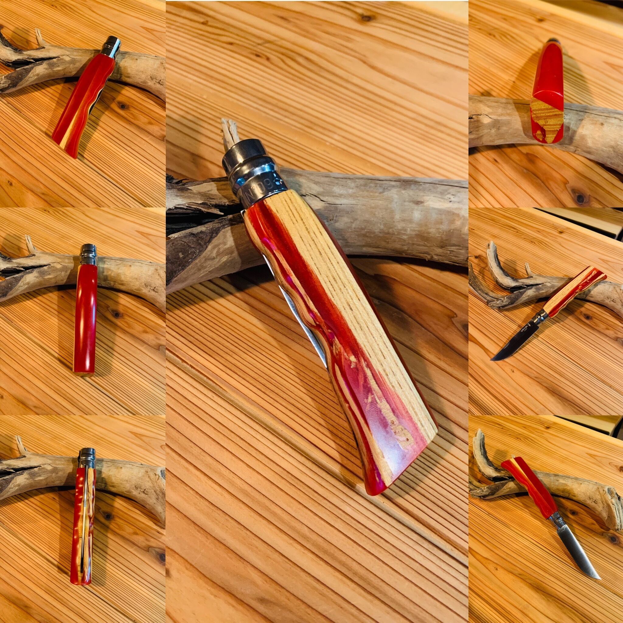 人気のOPINELナイフのNo09を木材とレジンでカスタムした商品です。