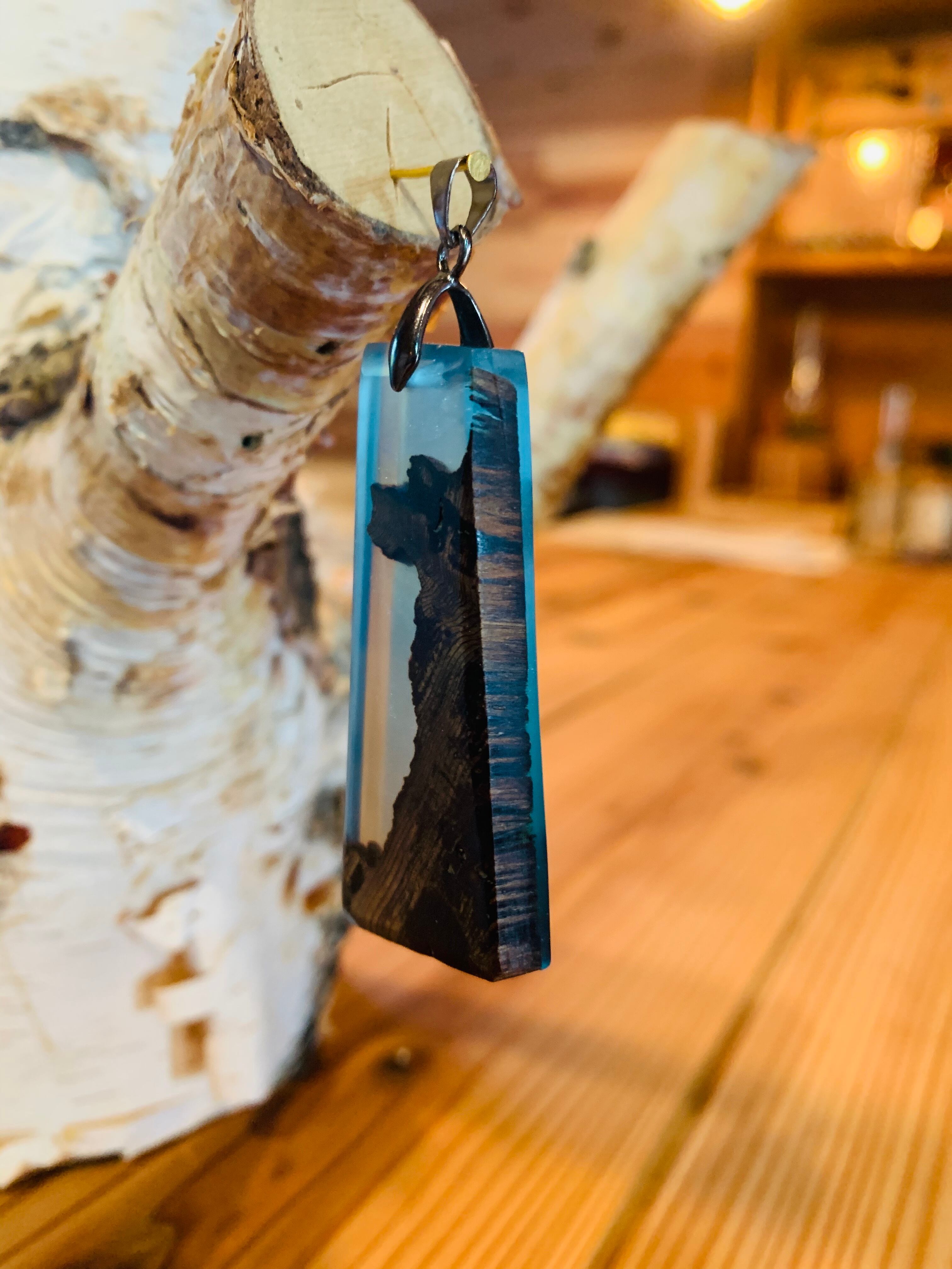 屋久杉のリバーテーブルを製作した時に出た端材から製作したペンダントトップになります。