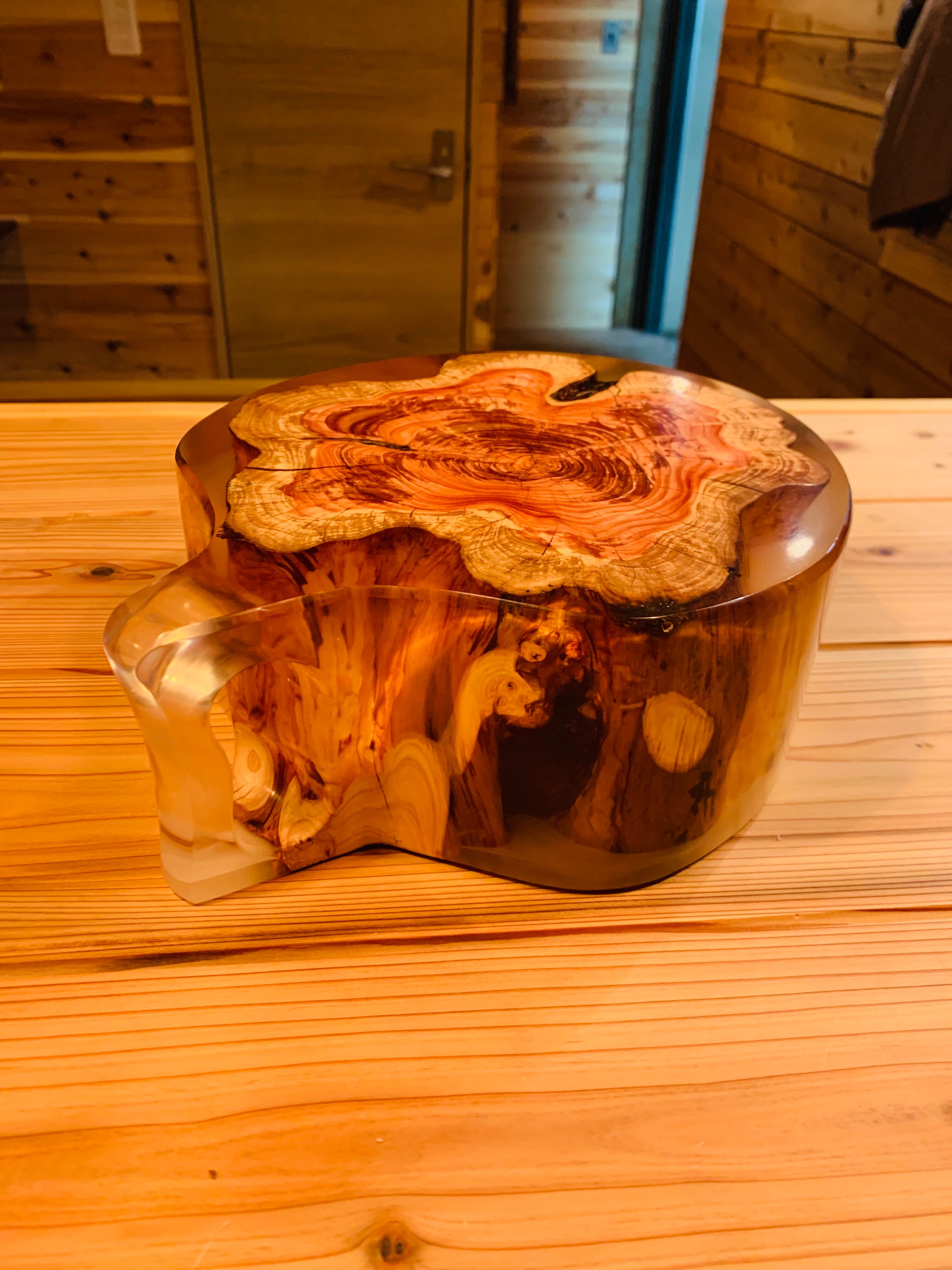 貝塚伊吹の切り株とレジンで製作した薪割り台になります。
